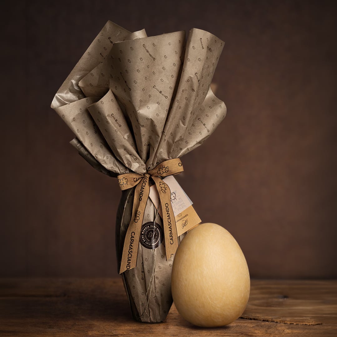 Il Caciouovo di Carmasciando è un formaggio artigianale a pasta filata che unisce la tradizione casearia dell’Irpinia a un’idea originale e sorprendente: la forma di un vero uovo di Pasqua. Realizzato con latte vaccino 100% proveniente dai pascoli irpini, questo formaggio nasce da una lavorazione lenta e attenta che valorizza la qualità del latte e la cultura casearia del territorio.